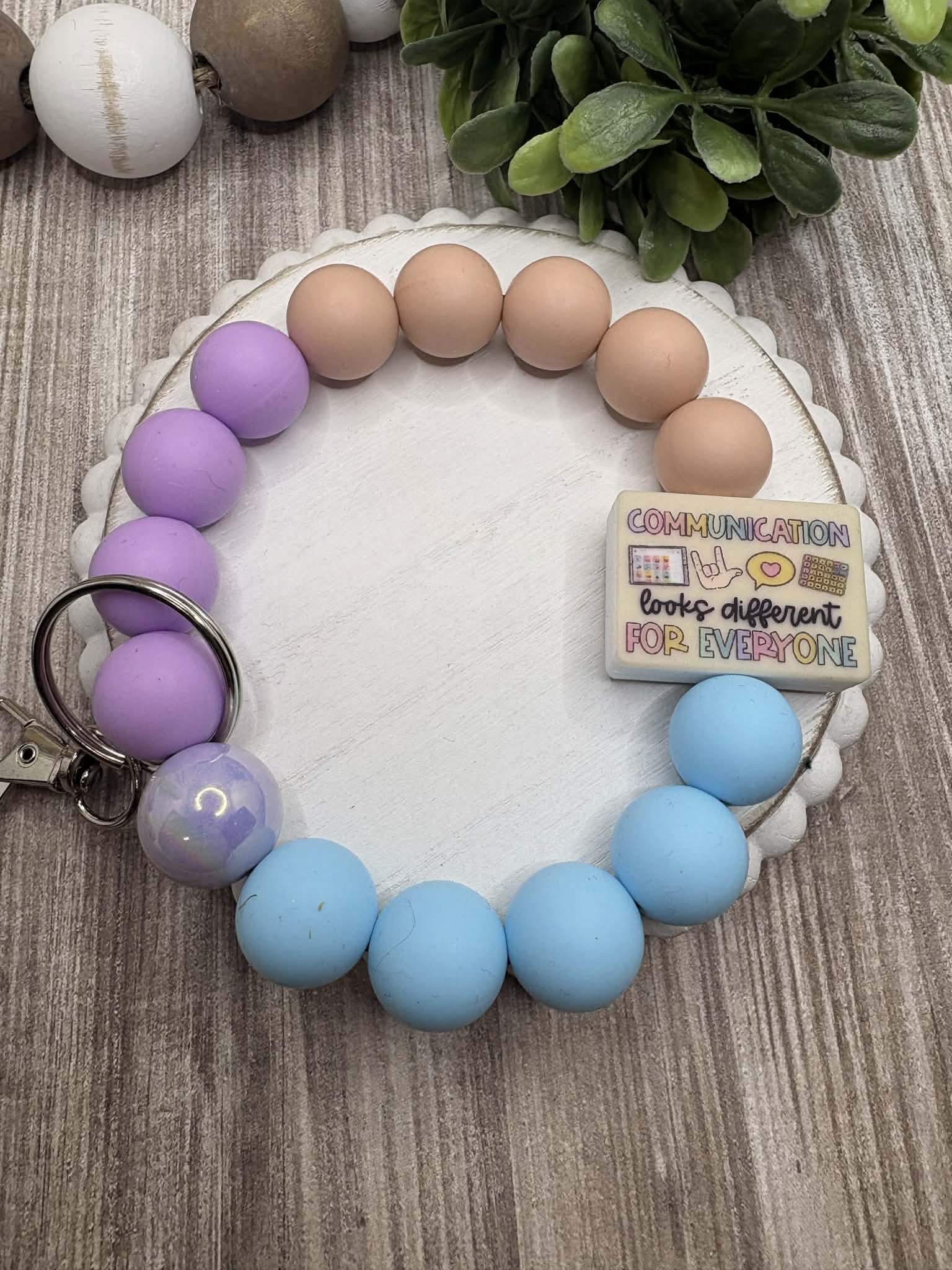 Communication looks different For Everyone Beaded Wristlet - Purple, Blue, Tan