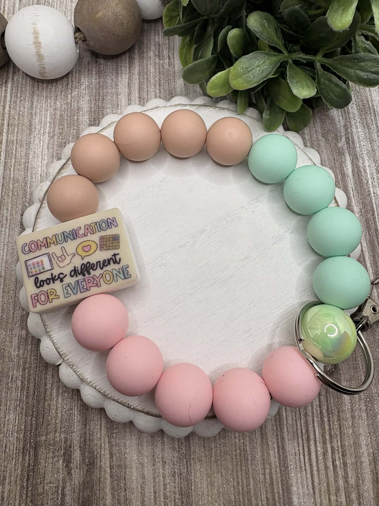 Communication looks different For Everyone Beaded Wristlet - Tan, Pink, Teal