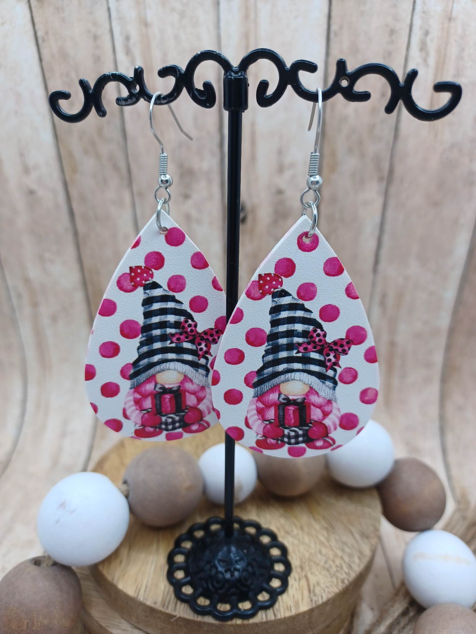Gnome w/ Black Buffalo Hat Holding a Present w/ Polka Dots
