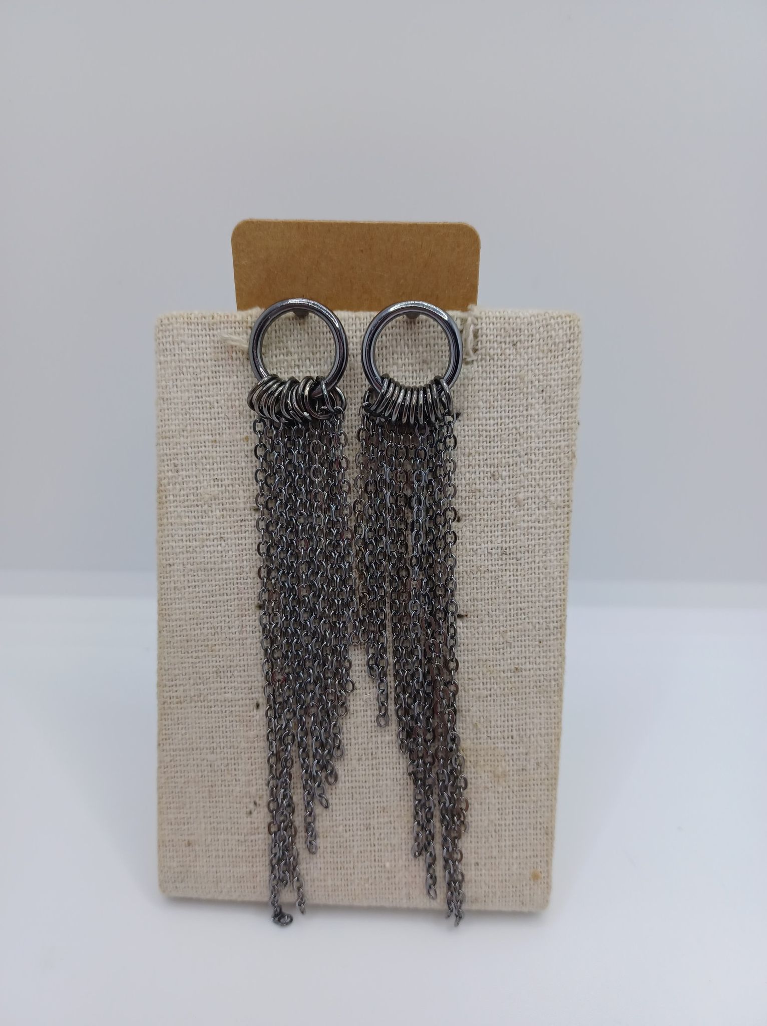 Gunmetal Circle Earrings w/ Tassels