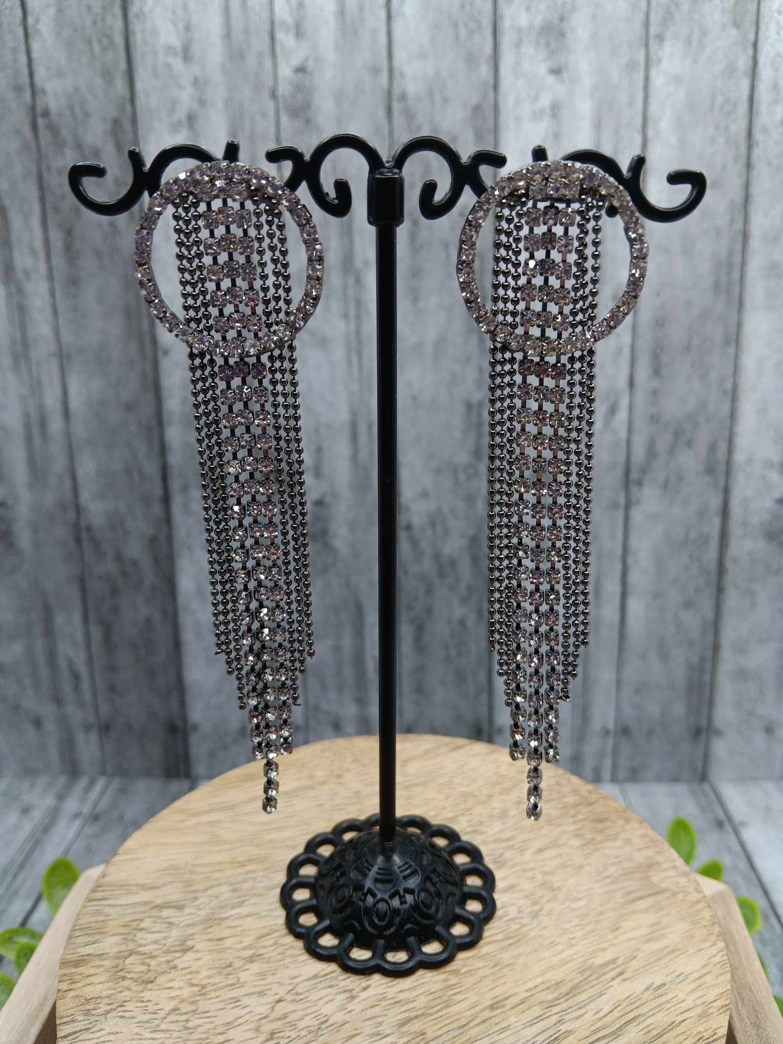Gunmetal Tassel Earrings w/ Rhinestone Accents
