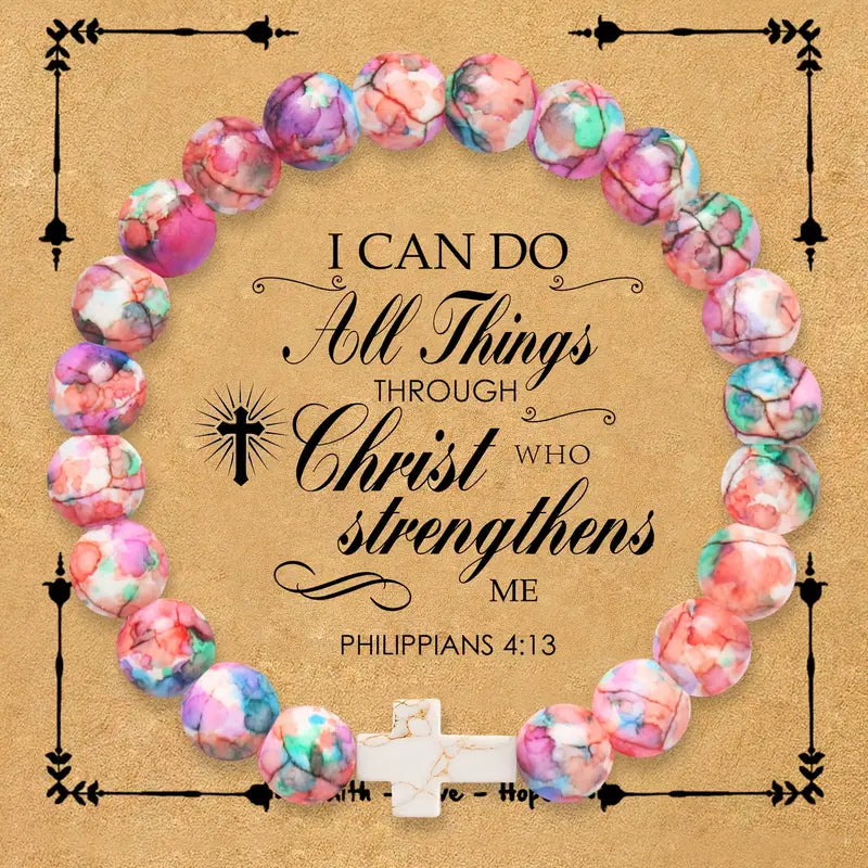 Pink, Purple, White, & Blue Speckled Cross Bracelet