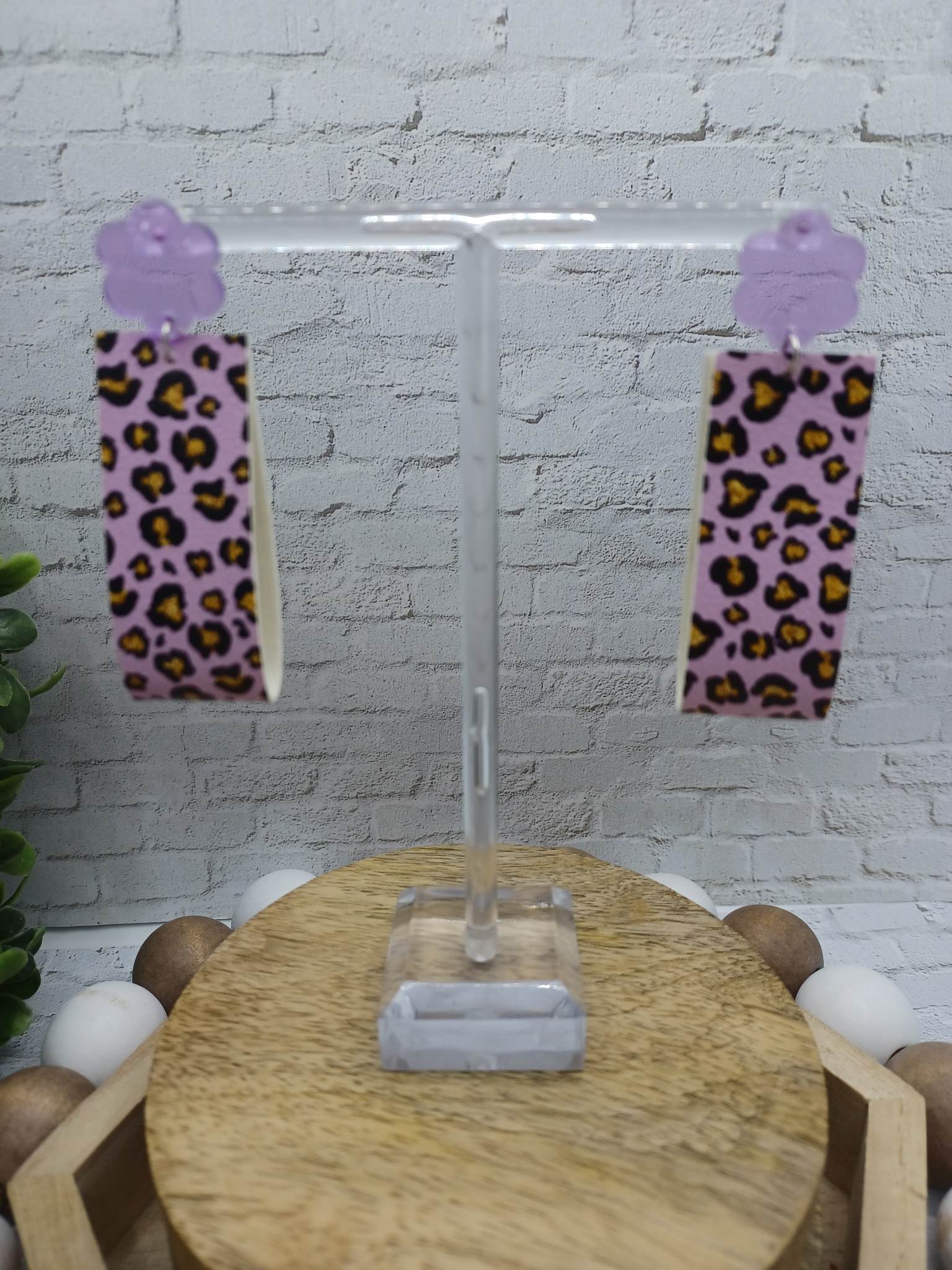 Purple Leopard Leather Style Earrings w/ Purple Flower