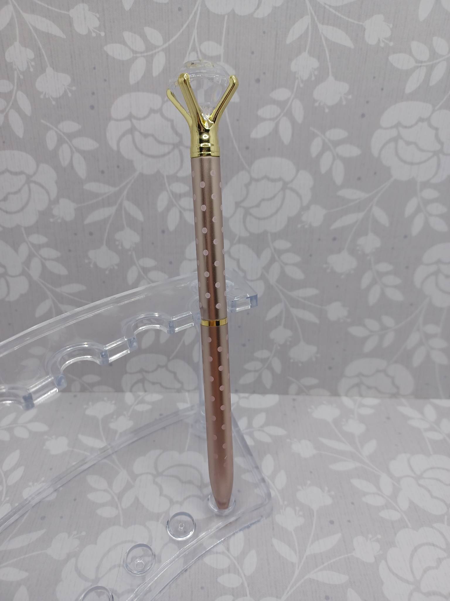 Rose Gold Polka Dot Pen w/ Diamond Top