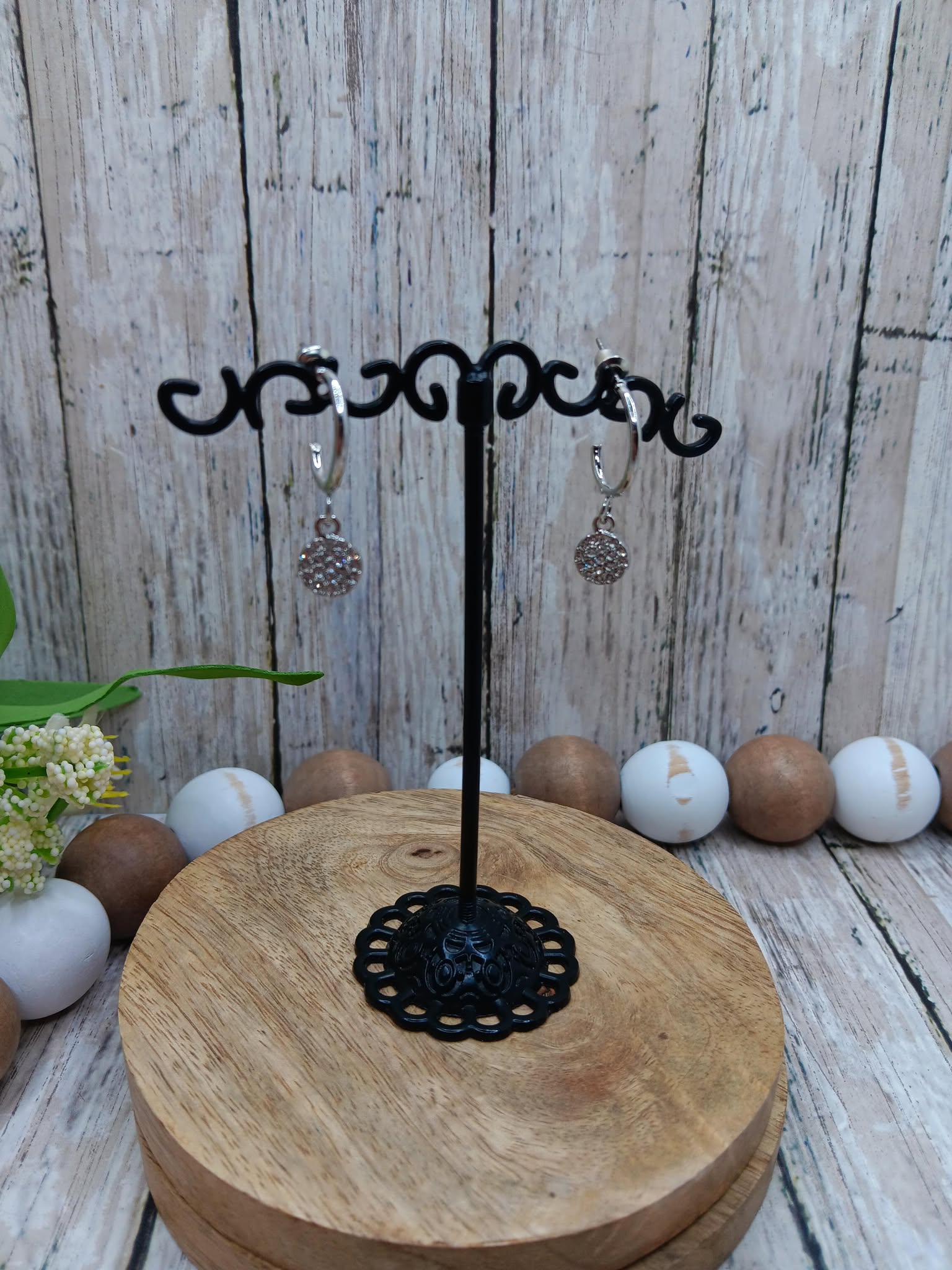 Silver Dainty Hoop Earrings w/ Rhinestone Detail