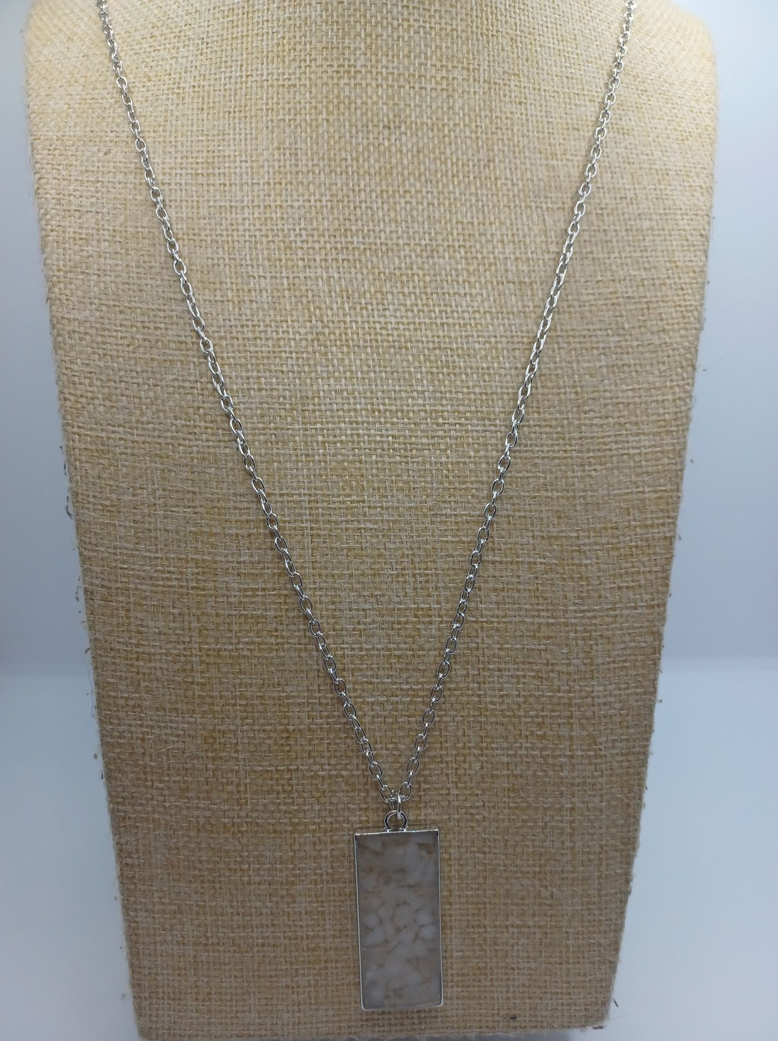 Silver Necklace w/ White Stone Acrylic Pendant