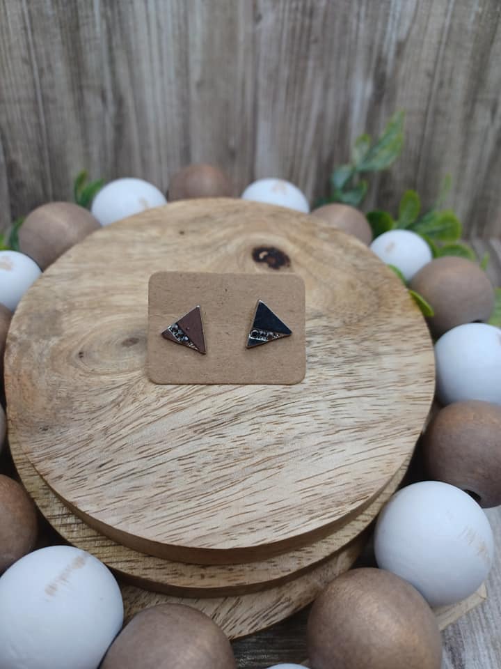 Silver Triangle Earrings w/ Hematite Rhinestone Accents
